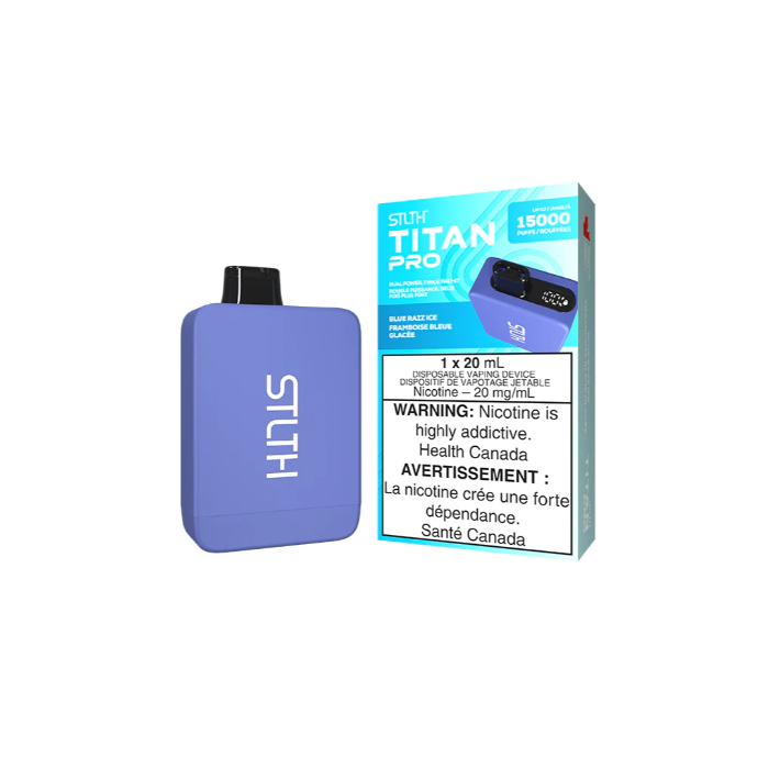 Indulge in Blue Razz Ice with STLTH Titan Pro – 15,000 puffs of icy berry goodness. Shop at Lux Vapes, the best vape shop in Canada for premium products.